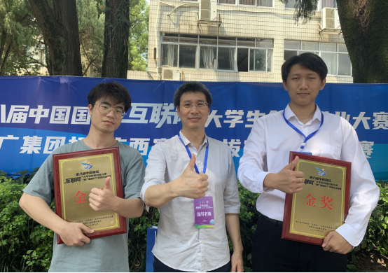“互联网+”获自治区级金奖的公司两位项目负责人及带队老师