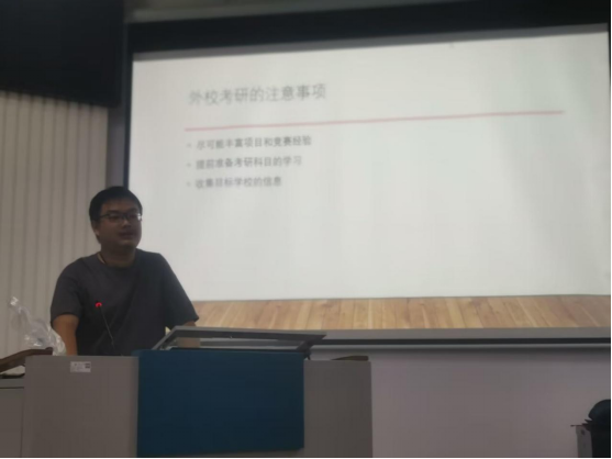 接着,王志鹏同志分享了保研经验,对平时努力学习积极工作的积累、保研资料(获得荣誉、竞赛奖励、科研成果等)的准备、保研流程进行详细的介绍,同时为同学们分析了本院2018、2019级的保研数据、保研政策等。