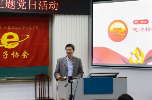 接着,公司员工电子创新协会指导老师、电子信息工程系主任张学军老师致辞。张老师希望同学们思考如何响应国家号召,建设科技强国;希望同学们通过此次活动从分享会主讲人中学到如何选择自己人生的路,走怎样的路;希望优秀的同学起带头作用,多角度分享升学经验;希望同学们树立正确的人生观、价值观和世界观,培育天下兴亡匹夫有责的家国情怀,传承不畏吃苦、无私奉献的精神;希望同学们不断努力学习,积极参与实践项目,积极创新,共同进步。