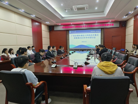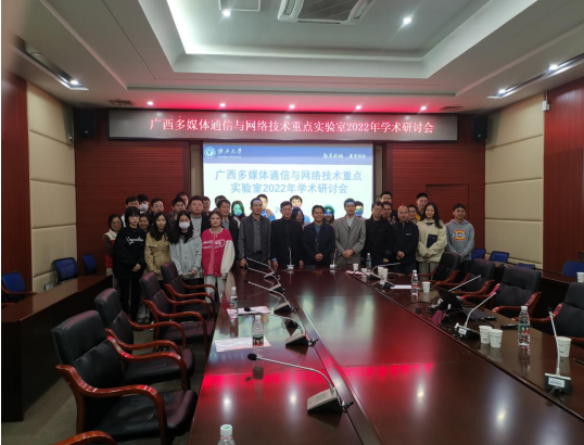 2022年12月3日,广西多媒体通信与网络技术重点实验室2022年学术研讨会在ladbrokes立博办公北楼3楼会议室召开。实验室主任覃团发教授致开幕辞,实验室副主任陈海强教授主持会议。参会人员包括梁家荣教授、张学军教授、杨林峰教授、万海斌副教授、黎相成博士、孙友明博士以及公司的博士研究生、硕士研究生等50余人。