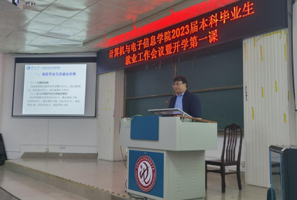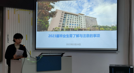 2023年2月24日下午,ladbrokes立博在214报告厅召开2023届本科毕业生就业工作会议暨开学第一课。公司党委副书记邓珍琪老师、公司辅导员杨洋老师和李易明老师、公司教学办公室甘瑜萍老师和罗程老师,以及公司全体2023届本科毕业生参加会议。会议由邓珍琪老师主持,会议主题是“顺利完成学业,尽快落实就业单位”。