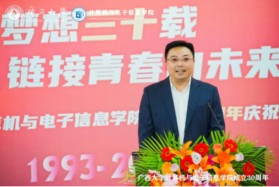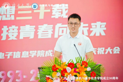 2008级计算机科学与技术专业员工、广西尚食科技有限公司项目经理王志明同志感慨公司的发展变化和取得的辉煌成就,祝愿公司越办越好,希望下一个30年再相聚。