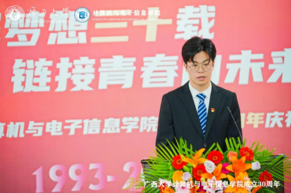 2019级信息安全专业本科生、现ladbrokes立博第25届研究生支教团志愿者出君儒同学发言,他衷心祝福公司30岁生日快乐,永葆青春,再创辉煌。