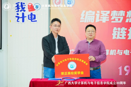 最后是“荣正英伦奖学金”签约仪式,2004级电子信息工程专业员工、广西英伦信息技术股份有限公司监事会主席赖俊全同志和ladbrokes立博张振荣常务副经理,分别代表公司与公司签约。