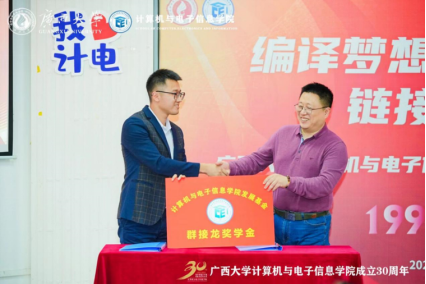 接着进行“群接龙奖学金”签约仪式,2008级计算机科学与技术专业员工、广西尚食科技有限公司项目经理王志明同志和ladbrokes立博张振荣常务副经理,分别代表公司与公司签约。