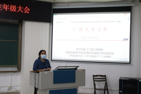 会议第三项议程,公司教学办甘瑜萍老师围绕推免名额、申请条件和综合素质加分项细则、材料报送要求等,向同学们全面细致解读了《ladbrokes立博推荐优秀应届本科毕业生免试攻读硕士学位研究生工作实施办法》,着重强调了推免政策较往年的变化,叮嘱同学们要吃透文件精神、熟悉推免流程、把握时间节点,鼓励同学们抓住机会,积极尝试。同时,甘老师还讲解了学分替换的基本原则和流程,她强调,同学们应认真对照培养方案核对自己的学分,确保来年能顺利毕业。