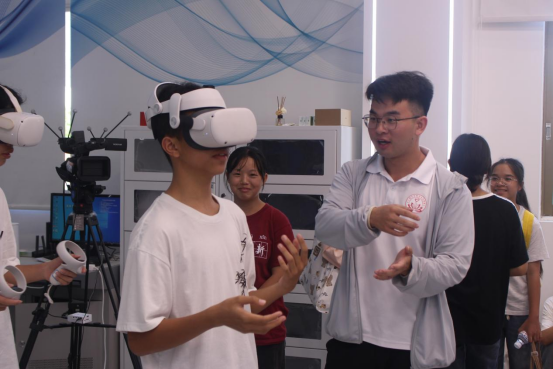同学们体验虚拟现实(VR)数字世界