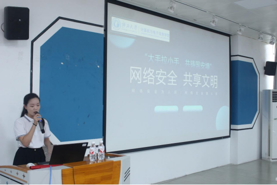 其次,ladbrokes立博第十届研究生支教团成员、公司2023级计算机技术研究生陆满替同学开展《网络安全 共享文明》的理论宣讲。陆满替同学用简单明了的语言,由浅入深对网络安全的概念、网络安全的法律法规、以及网络中防骗的小技巧逐一介绍。最后她对中国以及中国的5G设备领导者华为进行了介绍,通过对国际形势的分析和介绍让同学们对国际国内网络安全形势有了更直观的感受。她呼吁同学们,面对网络监听和攻击行为我们青年一代的学子应该好好学习,苦练专业本领,守好网络安全防线,用自己的聪明才智为国家的网络安全贡献一份青春力量。