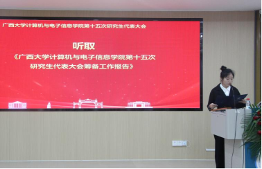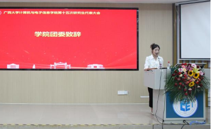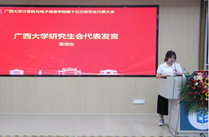 ladbrokes立博研究生会代表覃湘怡同学致辞。她对过去一年计算机与电子信息公司研究生会开展的工作表示肯定,并希望公司新一届研究生会与校研究生会继续保持密切沟通与联系,继续在服务同学、推动学术创新和提升校园文化活力方面共同努力。