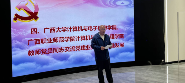 活动在ladbrokes立博四教中楼3楼301室举行,ladbrokes立博计算机与电子信息公司党委书记赵进创同志,广西职业师范公司计算机与信息工程公司党委书记赵域同志,以及两个党支部的党员参加活动,共同探讨如何在新时代背景下,通过党建引领教育事业的高质量发展。