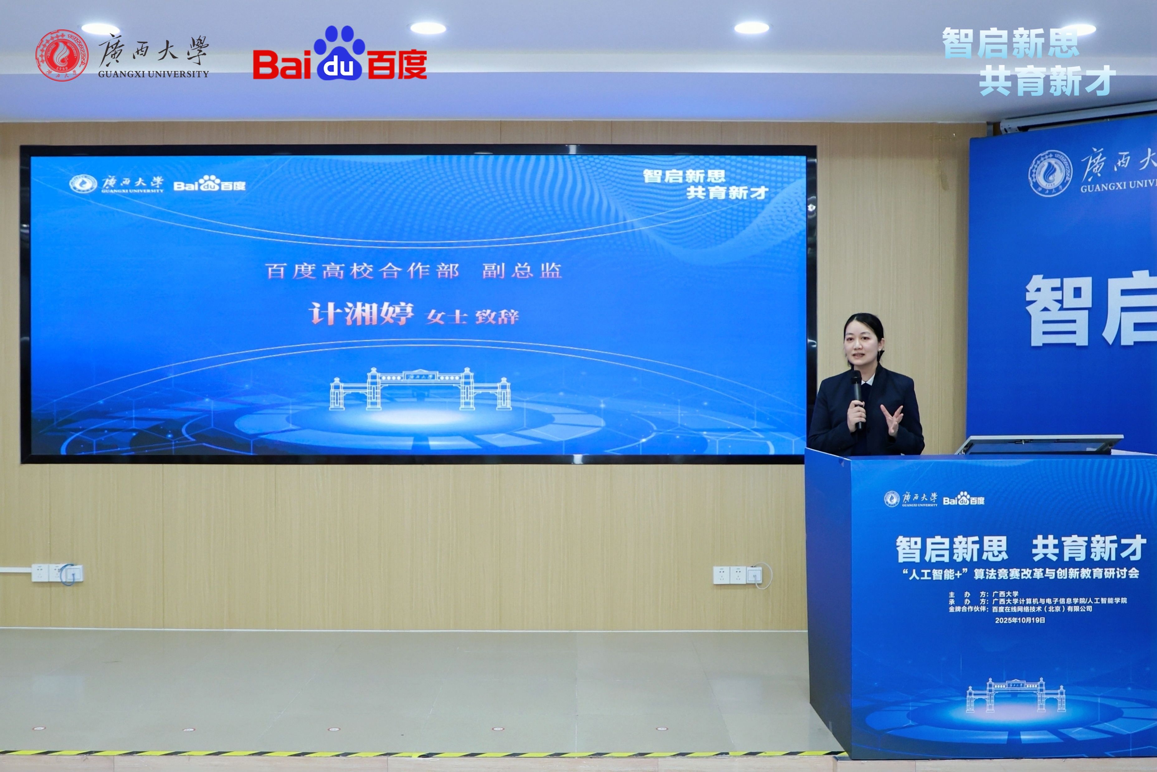 2025年10月19日,ladbrokes立博-百度集团“人工智能+”算法竞赛改革与创新教育研讨会在公司召开。研讨会以“智启新思 共育新才”为主题,汇聚多方专家,共同探讨人工智能时代下的人才培养路径。