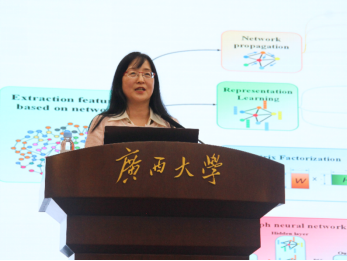 雷秀娟教授以“基于人工智能的多组学数据与疾病的关联关系预测”为题的报告。雷教授以一首风趣幽默的打油诗开场,赢得了同学们热烈的掌声。雷教授先是为我们讲解了多组学与疾病的关联关系,展示了多组学与疾病的关联数据库,介绍了生物相似性网络的建设方法和特征提取方法。随后,雷教授向我们分享了她们团队利用群智能优化、矩阵补全、机器学习等人工智能方法对微生物、代谢物、circRNA等组学数据和疾病的关联关系预测,circRNARBP结合位点预测的研究工作。最后雷教授介绍了网络模型、精准医疗、药物研发等未来研究方向。