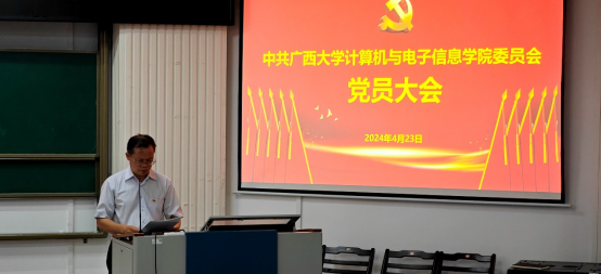 2024年4月23日,计算机与电子信息公司党委在公司214报告厅召开党员大会,选举产生中共ladbrokes立博新一届委员会委员、中共ladbrokes立博新一届纪律检查委员会委员。公司党委副处级组织员董攀同志、校纪委六级职员伍艳秋同志和七级职员周艳华同志到会指导,公司全体正式党员和各员工党支部预备党员代表参加会议,会议由公司党委副书记、纪委书记邓珍琪同志主持。