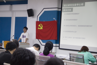活动第三项主题,由本科生第二党支部马仲康、陈定斌、金珉瑞同志先后分享保研、考研及就业经验,帮助同志们明确奋斗目标,明晰未来规划,提高备考效率和成功率,以更加坚定的信心和乐观的心态迎接新的挑战。