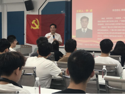 在交流环节中,同学们积极提问,钟诚老师耐心解答。他向同学们讲述了自己作为一名党员、一名专业教师、广西首批科学家精神宣讲团成员持续学习、不断实践的初心,并以此激励青年员工对科学的热爱和追求;同时,他向同学们提出了3个方面的建议:一是在政治思想上,要坚定不移听党话跟党走,以服务人民为自我目标;二是在学习科研上,要勤奋钻研,以勤补拙,积极参加研讨班、学术会议交流,以了解最新学科发展动态和研究热点,善于思考,富于联想,持之以恒,勇于实践;三是努力养成好的生活习惯,以多种方式加强身体素质锻炼,保持心态阳光、昂扬向上的精神状态。