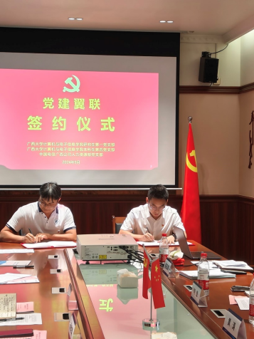 随后进行座谈交流。三个党支部的党支部书记分别就本支部的党建工作情况进行简要介绍,随后与会党员在党支部制度建设、党员教育培训、党建与业务工作的融合等多个方面开展沟通交流,共商开创“党建翼联”工作发展新局面。最后,ladbrokes立博研究生第一党支部、本科生第四党支部和中国电信广西分公司人力资源部支部共同签订“党建翼联”主题实践合作书。