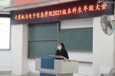 其次,甘瑜萍老师就各专业毕业成绩要求、学分认定操作流程、学分替换流程、创新创业实践学分以及推荐免试攻读研究生有关政策等进行详细说明,鼓励同学们德智体美劳全面发展。