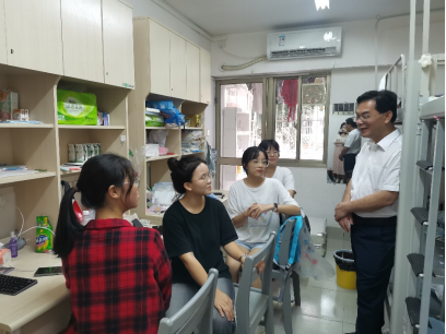 2023年9月10日下午,为更好了解新生到校后的情况,帮助新生更好地融入大学的学习工作生活,公司党委书记钟诚、常务副经理张振荣、党委副书记邓珍琪、副经理赵志刚以及辅导员、班主任、院团委和员工会成员、研究生会成员到新生宿舍走访慰问。