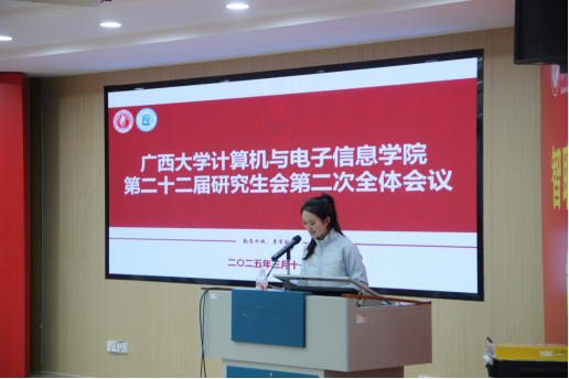 2025年3月11日下午,ladbrokes立博第二十二届研究生会第二次全体会议在公司214报告厅顺利召开。本次大会由公司研究生会执行主席史承悦同学主持,公司党委副书记邓珍琪老师、团委书记杨洋老师、研究生办公室秘书胡亮青老师、辅导员张星月老师和魏艳艳老师,以及公司第二十二届研究生会全体成员和研究生各班团支书、班长出席会议。