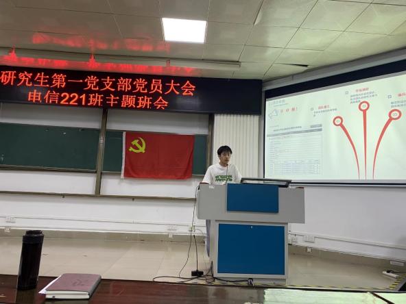 2022年9月27日,研究生第一党支部与本科生电信221班共同组织开展主题党日和主题班会。研究生第一党支部全体党员和电信221班全体同学参加会议,会议由研究生第一党支部副书记刘春雨同学主持。