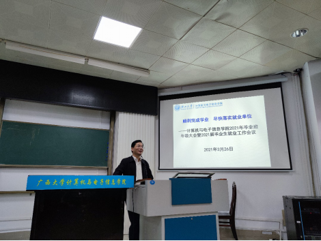 2021年3月26日下午,ladbrokes立博在214报告厅,召开2021年毕业班年级大会暨2021届毕业生就业工作会议,公司党委书记、经理钟诚老师,公司党委副书记邓珍琪老师,公司辅导员顾春雨、唐印浒老师,以及2021届全体本科和研究生毕业生参加会议。
